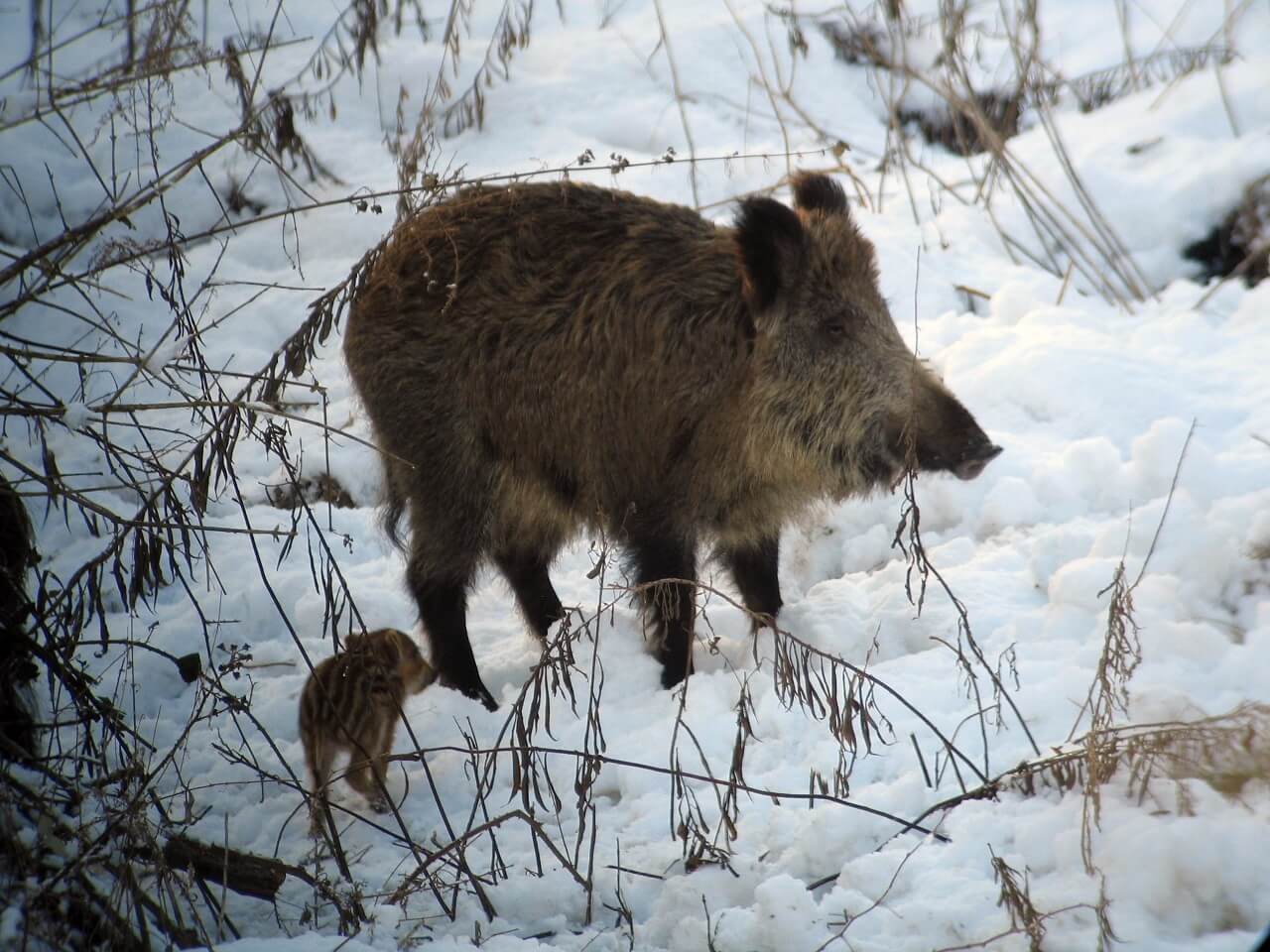 Зимой кабаны ищут корм на участках, где земля промерзла не очень глубоко, а укрываются в хвойных лесах и чащобах - там снега меньше и легче передвигаться.