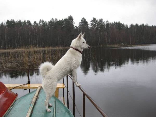 Лайку, которую вы будете использовать на охоте за утками, необходимо приучать к воде, к лодке. Для этого, особенно в жаркие дни, с нею надо как можно чаще гулять у воды. Лайки сами очень любят воду и пользуются каждым случаем, чтобы искупаться. Гораздо труднее приучить лайку спокойно сидеть в лодке. Для этого необходимо, чтобы она очень четко выполняла обычную команду «сидеть». Приучать к лодке любую собаку надо постепенно, вначале сажать ее в лодку, стоящую на берегу, потом в лодку у берега.