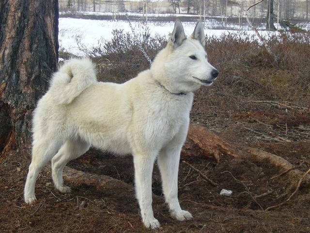 Карело-финская лайка - самая маленькая из лаек. Ее высота в холке у кобелей 42 - 46 см, у суки - 40 - 46 см. Окрас только рыжий разных оттенков, могут быть чернота на морде и белые отметины на груди и лапах. Окрас карело-финской лайки - ее беда, потому что в лесу во время мелькания в траве или в кустах ее часто принимают за лисицу. Охотники опасаются, что из-за этого собаку могут убить, и предпочитают лаек других пород. Между тем у карело-финской лайки есть свои преимущества: ее удобнее содержать в городской квартире и перевозить в разных видах транспорта. Эта лайка обычно больше привязывается к хозяевам, чем лайки других пород. На охоте она подвижнее своих собратьев и более темпераментна.
