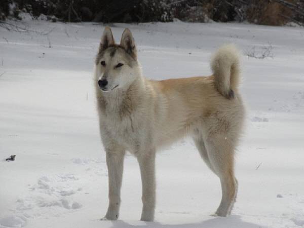 Лайки - средние по величине собаки. Даже неспециалист отличает их от других пород по сравнительно длинной, ровной и густой шерсти, пушистому, загнутому кольцом хвосту, острым стоячим ушам, острой морде с косым разрезом глаз.