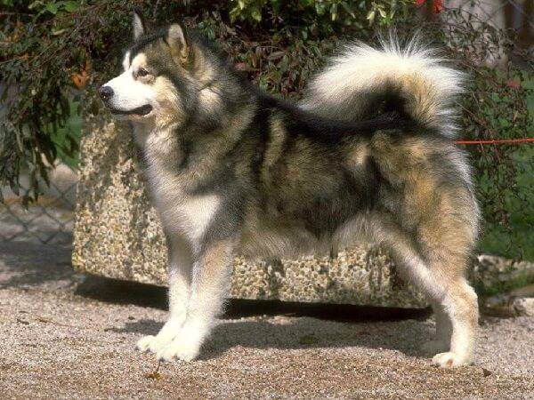 • хвост загнут кольцом или серпом на спину, на бок или прижат к бедру.