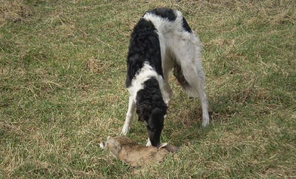 Первого пойманного зверя собака обязательно должна задушить, хотя бы при помощи охотника. Лисицу при этом следует тащить за задние ноги, подставляя борзой горло зверя, чтобы приучалась брать по месту. Первого зверя можно дать собаке немного потрепать и затем спокойно и мягко отобрать у нее добычу, обласкать и побаловать кусочком мяса (если станет есть). Обязательно с самого начала нужно следить чтобы борзая не мяла и тем более не рвала пойманного зверя.