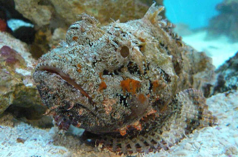 Бородавчатка – самая ядовитая рыба. Ее еще называют рыбой-камнем (внешне она на него похожа) и морским вампиром. Обитает она в водах Индийского и Тихого океанов. Смертельным может оказаться даже прикосновение к ее плавникам-иголкам, в которых находится тетродотоксин – яд, поражающий центральную нервную систему и разрушающий эритроциты крови.