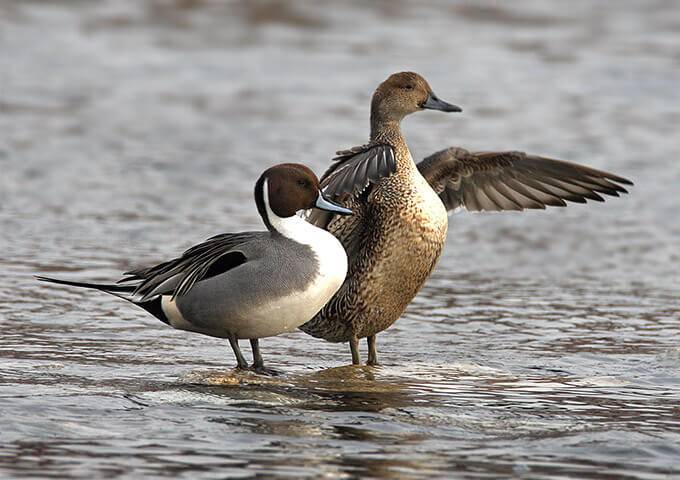 В полете шилохвости изгибают шею вниз и в стороны. У летящих птиц заметны, белые полосы, идущие по заднему краю крыльев. Ныряют шилохвости плохо и неохотно. Весной плывущий самец держит хвост наклонно поднятым вверх. Голос самца напоминает негромкий, мелодичный свист. Крик самки - негромкое кряканье.